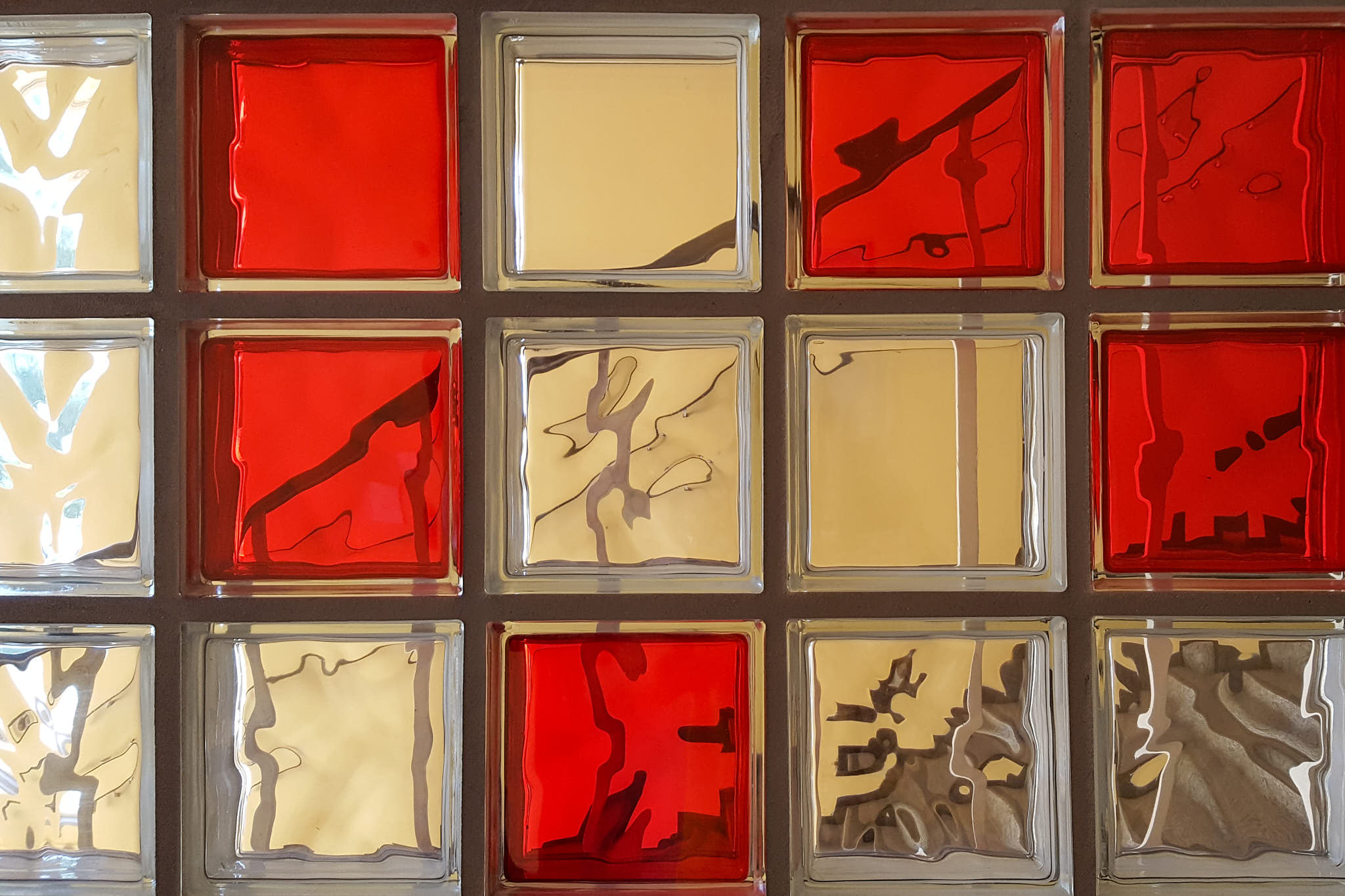 Glasbausteine sind in vielen Farbtönen (von klar über satiniert bis intensiv koloriert),