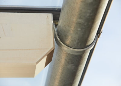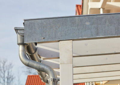 Für unseren Kunden aus Burgkirchen fertigten wir diese Terrassenüberdachung aus Holz, weiss gestrichen mit Glasdach und Regenentwässerung über verzinkte Regenrinne, Fallrohr und Traufbleche.