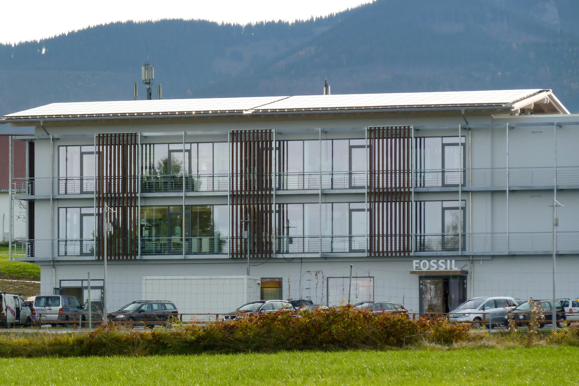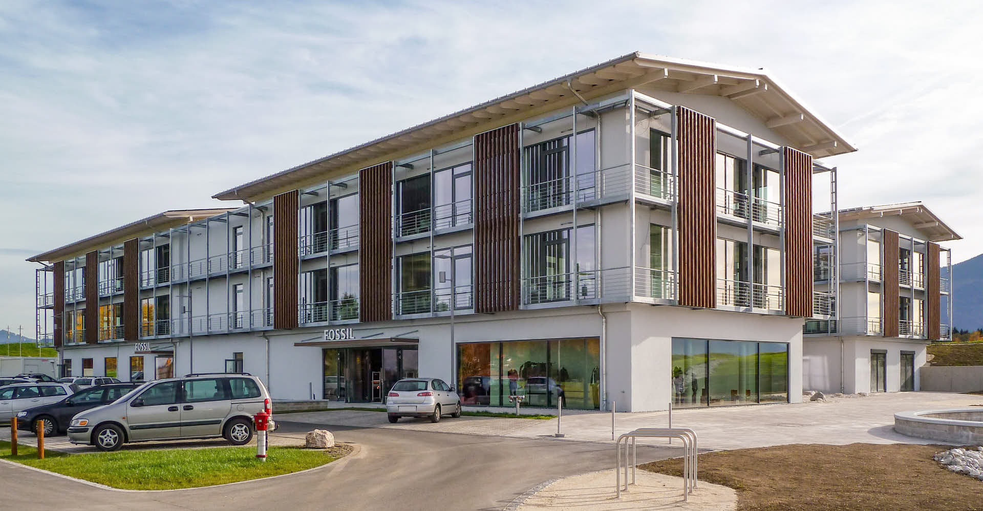 Mit dem Referenzobjekt Fossil Grabenstätt zeigt die Unterholzer Metallbau GmbH, heute Teil der Oberhauser Bau-Systeme GmbH, ihre Kompetenz im hochwertigen Objektbau mit Aluminium. Realisiert wurde eine moderne Aluminium Pfosten-Riegel-Konstruktion mit Aluminiumtüren, Verglasung sowie pulverbeschichteten Fensterelementen.